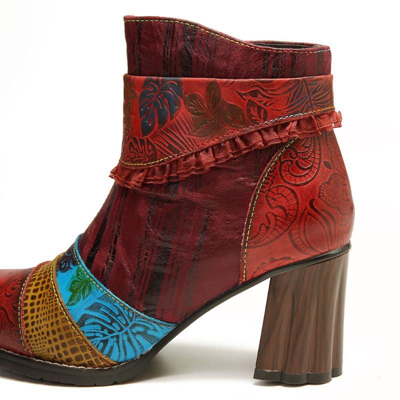 Naisten Kohokuvioidut Lehtikuvioiset Aitoa Nahkaa Yhdistävät Korkeakorkoiset Vetoketjulliset Nilkkurit