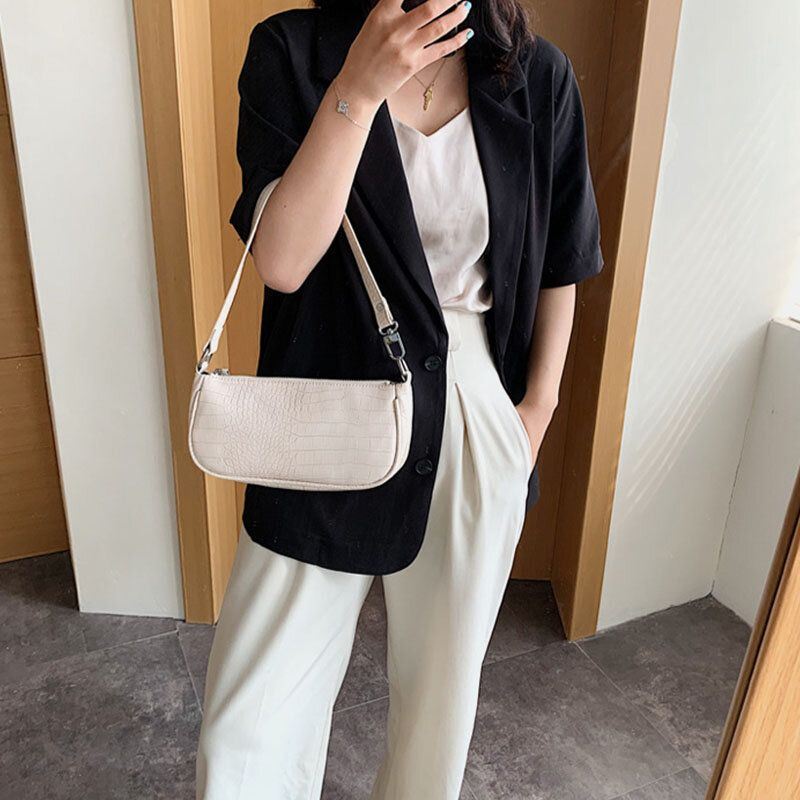 Naisten Krokotiilikuvioinen Kiinteä Olkalaukku Käsilaukku