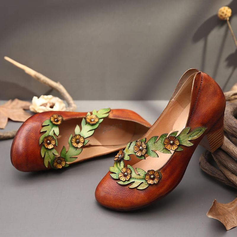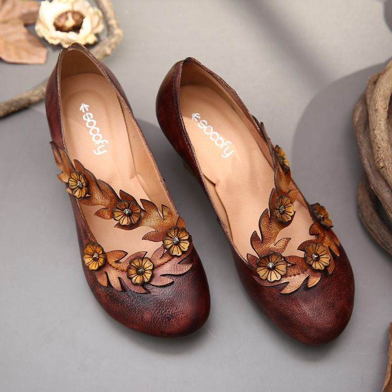 Naisten Kukkakoriste Aitoa Nahkaa Jousipumpuissa