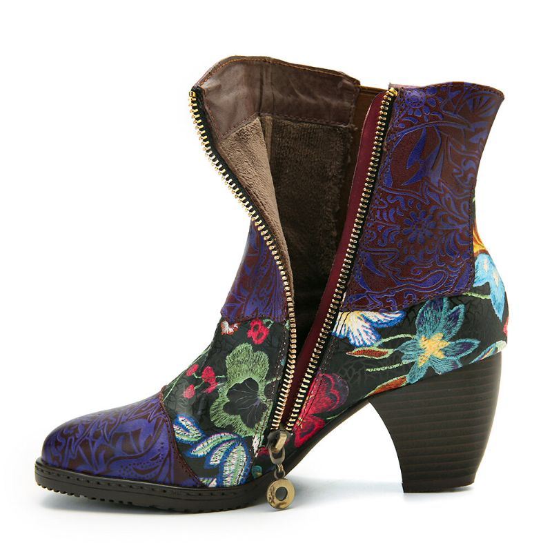 Naisten Kukkakuvioinen Pyöreä Varvassauva Lämmin Vuorattu Vetoketju Pohkeen Puolivälissä Chelsea-saappaat