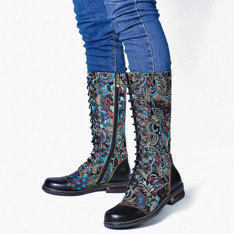 Naisten Kukkakuvioiset Värikkäät Tyylikkäät Vetoketjulliset Saappaat