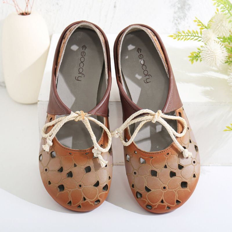 Naisten Mukavat Nahkaiset Ontto Pyöreä Kärki Pehmeä Pohja Nauhoitettavat Tasaiset Kengät