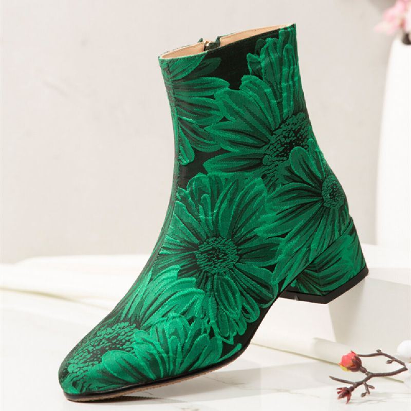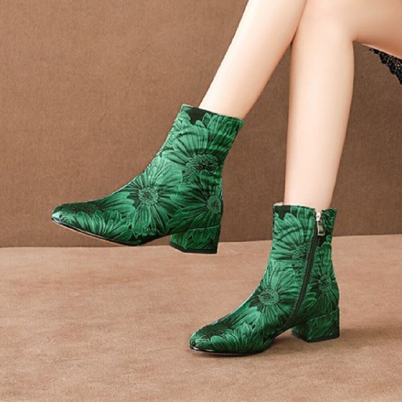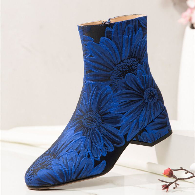 Naisten Muotikukat Painettu Satiini Mukava Lämmin Sivuvetoketju Paksu Kantapää Lyhyet Saappaat