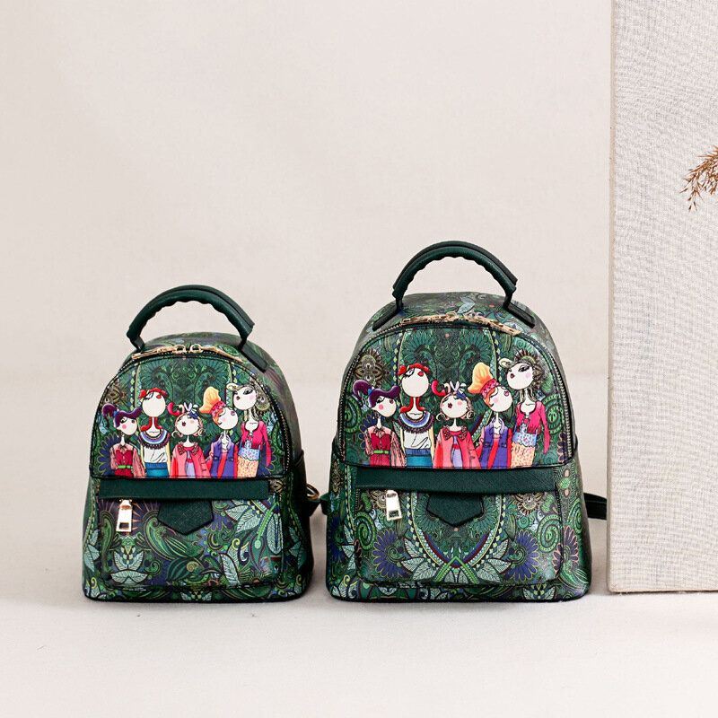 Naisten Nahkainen Sarjakuvahahmo Painettu Kuvio Suuri Kapasiteetti Reppu Olkalaukku Käsilaukku