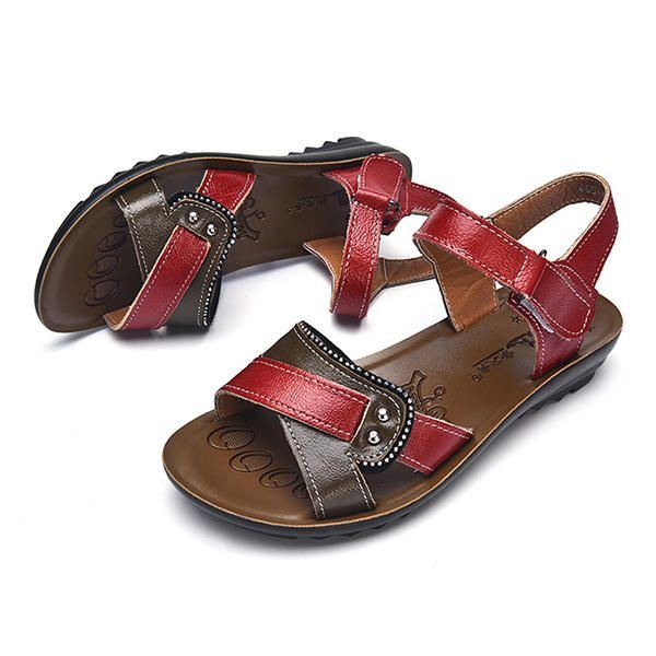 Naisten Nahkaiset Rento Mukavat Litteät Sandaalit