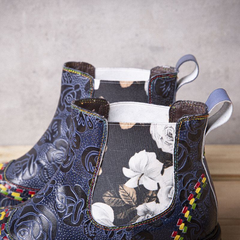 Naisten Nahkaiset Retro Kukkakuvioidut Tilkkutikkuiset Nilkkurit