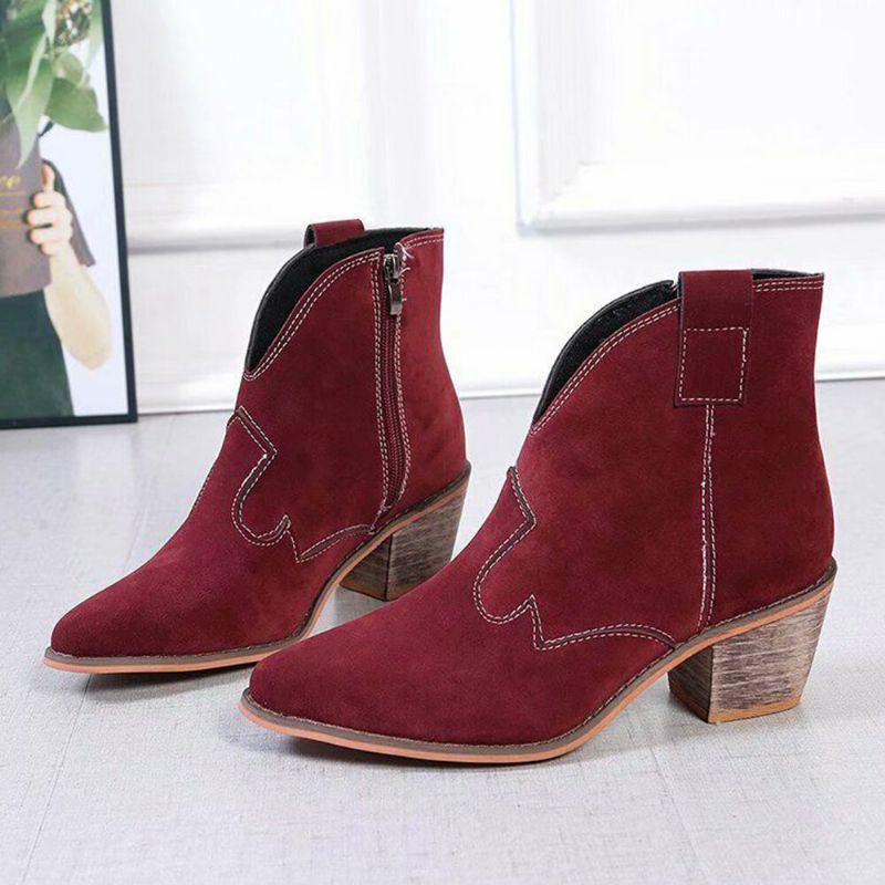 Naisten Plus-kokoiset Mokkanahkaiset V-leikkaus Paksukorkoiset Nilkkurit