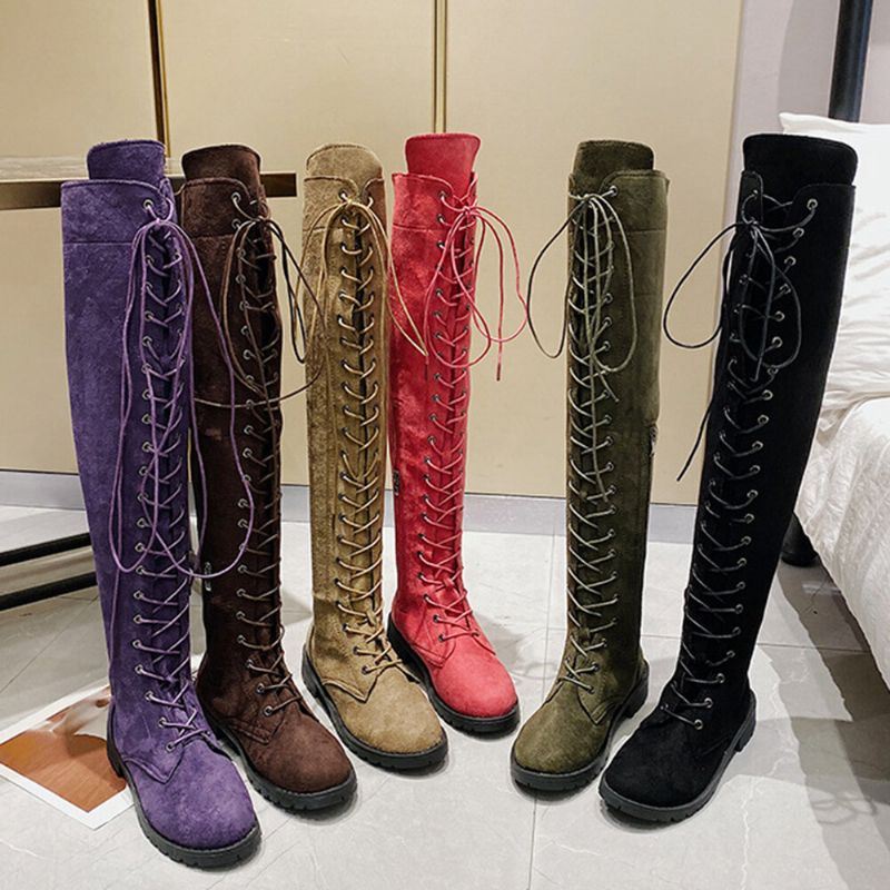 Naisten Plus-kokoiset Ristihihnat Sivuvetoketju Matalakorkoiset Polvisaappaat