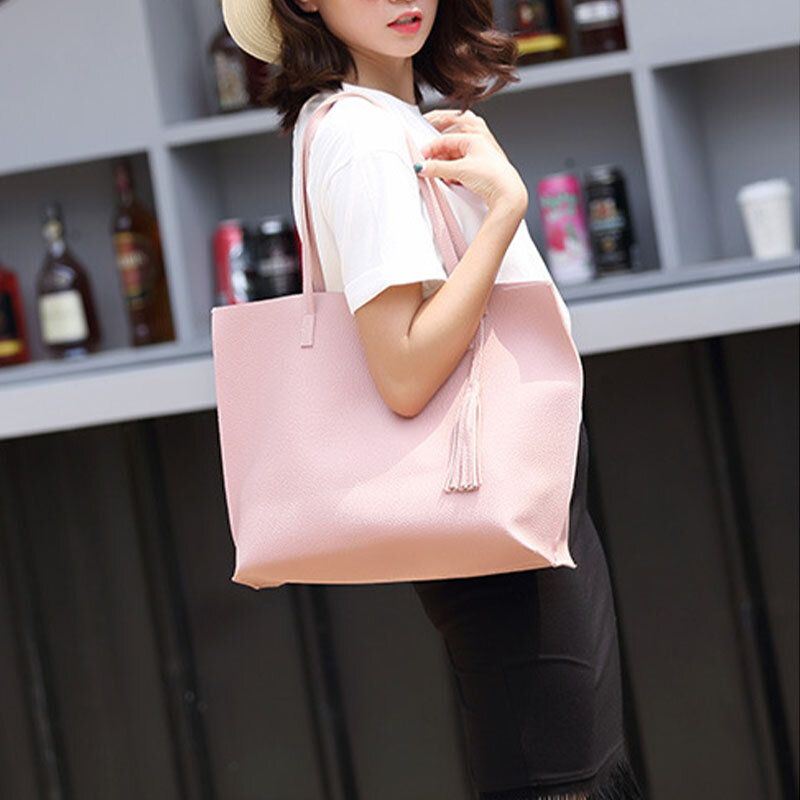 Naisten Pu-nahkainen Litsikuvio Suuri Tilavuus Rento Tupsu Kiinteä Olkalaukku Käsilaukku