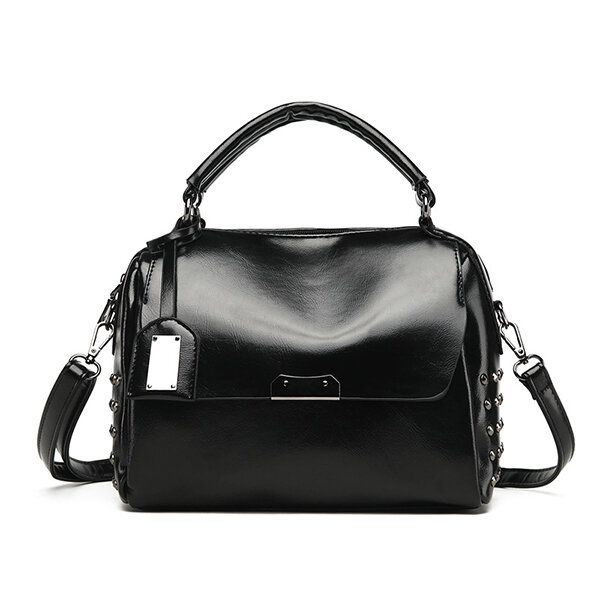 Naisten Pu Yksivärinen Muoti Öljy Vaha Niitit Boston Käsilaukku Olkalaukku