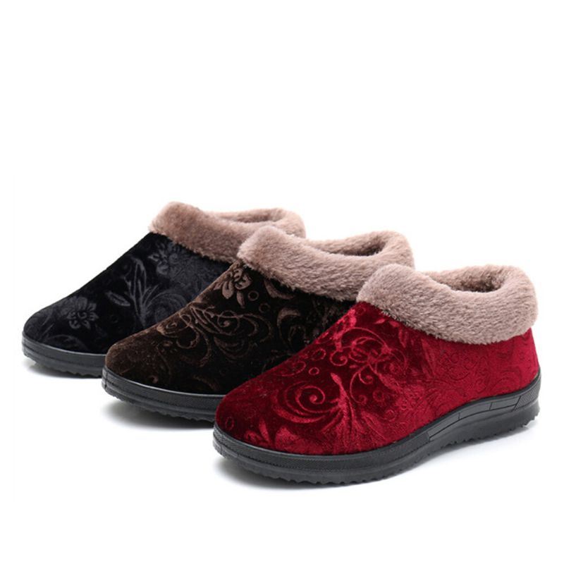 Naisten Pyöreät Varvassaappaat Rento Pistekuvioinen Lämmin Pörröinen Vuori Mukavat Litteät Puuvillasaappaat