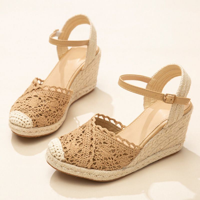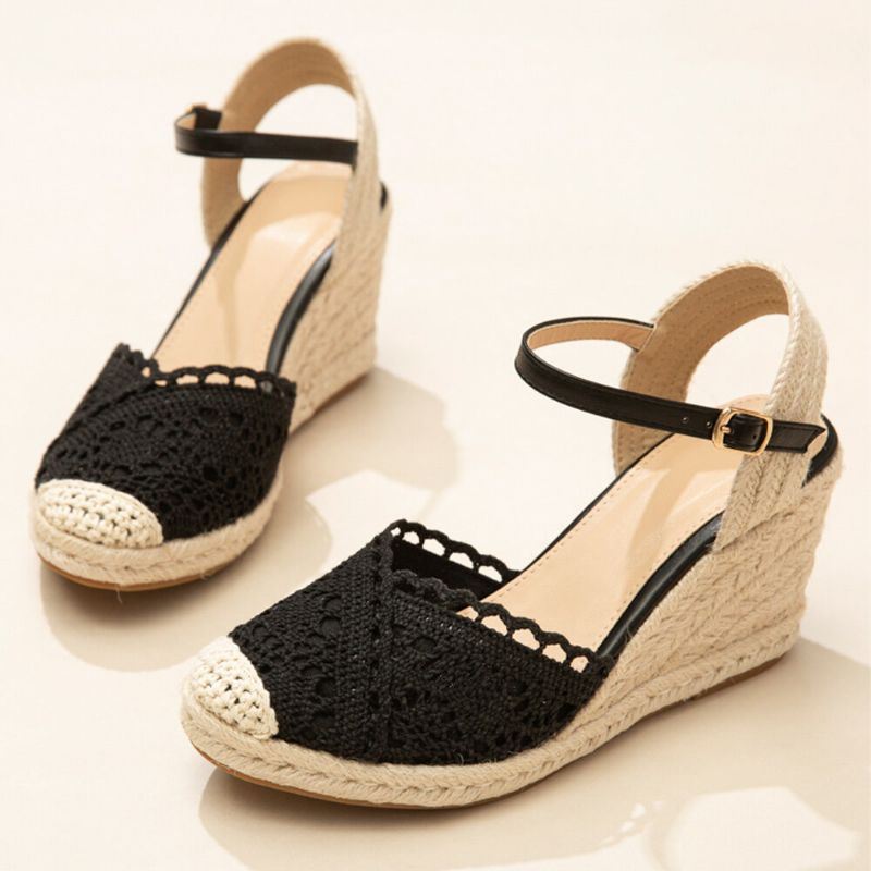 Naisten Rento Hengittävä Pitsi Suljettu Varvassolki Mukavat Espadrille-kiilat