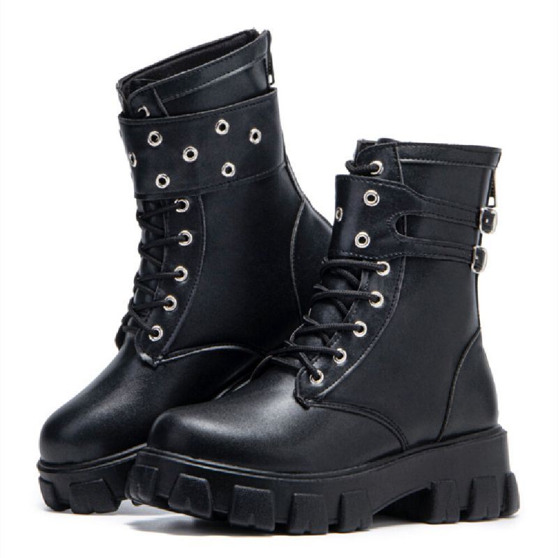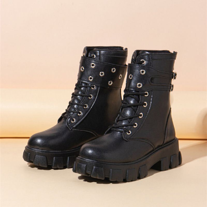 Naisten Rento Solkikoristelu Nauhaiset Paksupohjaiset Taistelusaappaat