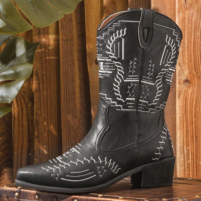 Naisten Rento Teräväkärkinen Vintage Brodeeratut Western Cowboy -saappaat Martin Boots