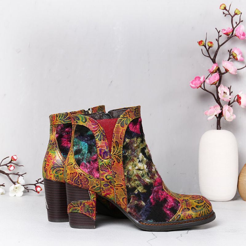 Naisten Retro Aitoa Nahkaa Yhdistävä Korkeakorkoinen Vetoketjumekko Lyhyet Saappaat