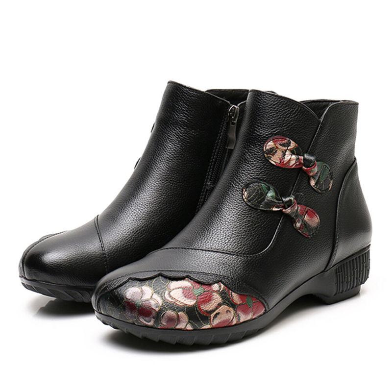 Naisten Retro-etniset Tikkaukset Painettu Lehmännahkainen Nahka Lämmin Mukava Puettava Sivuvetoketju Lyhyet Saappaat