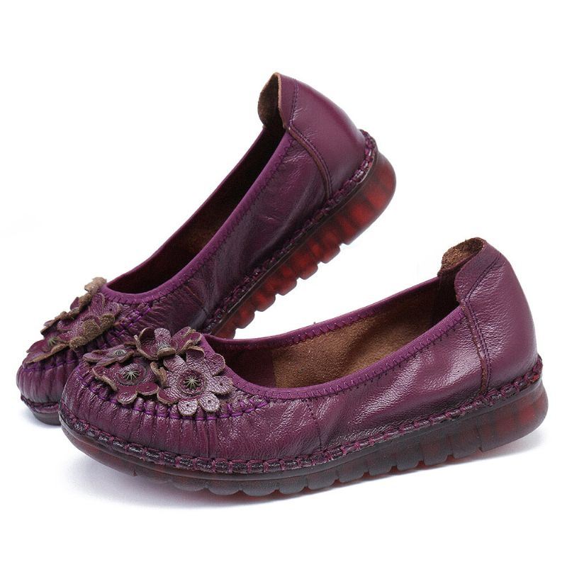 Naisten Retro-kukat Sisustus Miellyttävä Nahka Liukumaton Pehmeä Pohja Vapaa-ajan Kengät