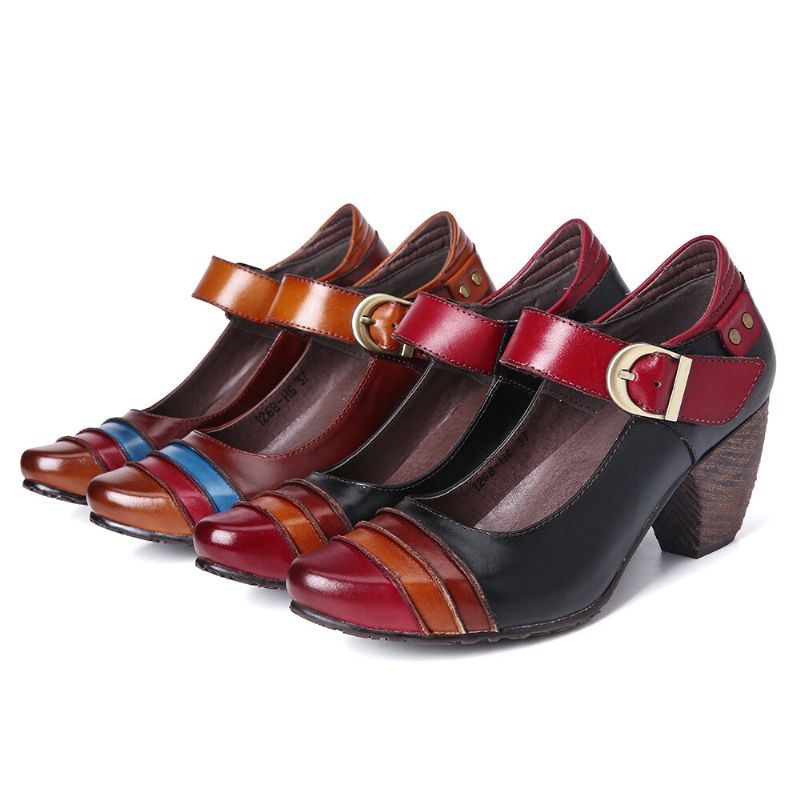 Naisten Retro-liitosmetallisolkihihna Aitoa Nahkaa Helppo Yhdistää Mukaviin Pumppuihin