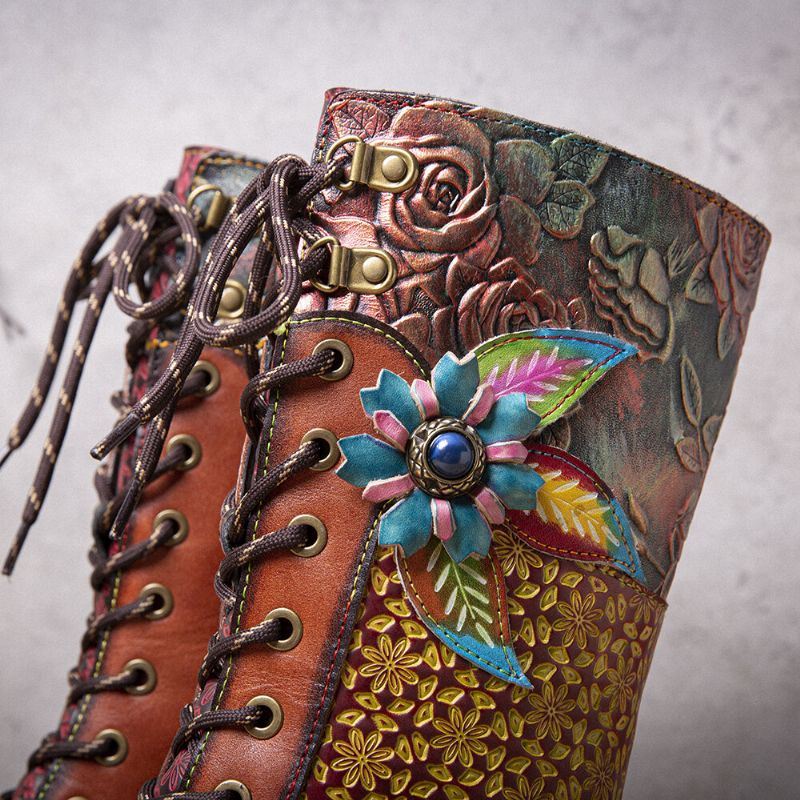 Naisten Retro Rub Väri Kolmiulotteiset Kukat Deco Mid-tube Saappaat
