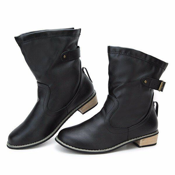 Naisten Retro Yksiväriset Moottoripyörän Ritarisolki Pyöreä Varvassaappaat