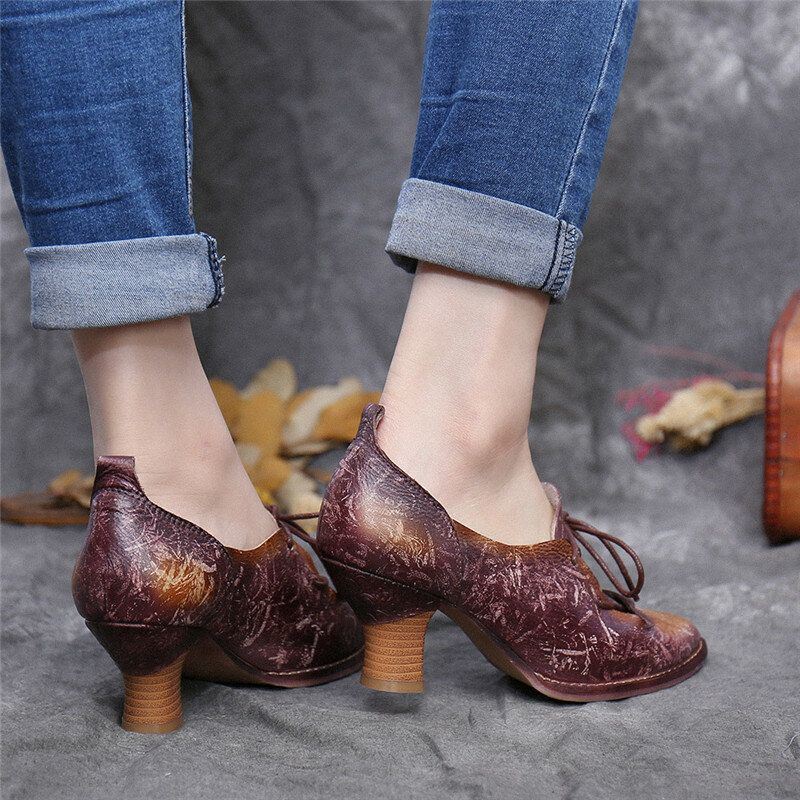 Naisten Retrokorkokenkillinen Aitoa Nahkaa Oleva Nauhoituspussi