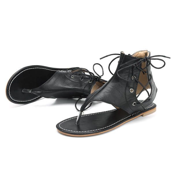 Naisten Roomalaiset Sandaalit Nauhanauhat Litteät Kengät