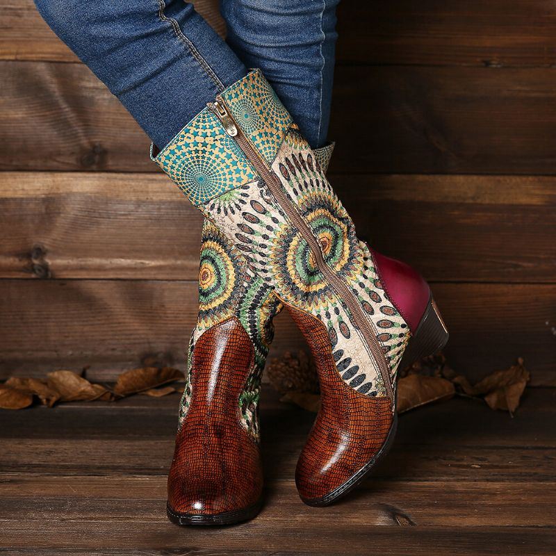 Naisten Splicing Tribal Pattern Vetoketjullinen Western Cowboy Saappaat