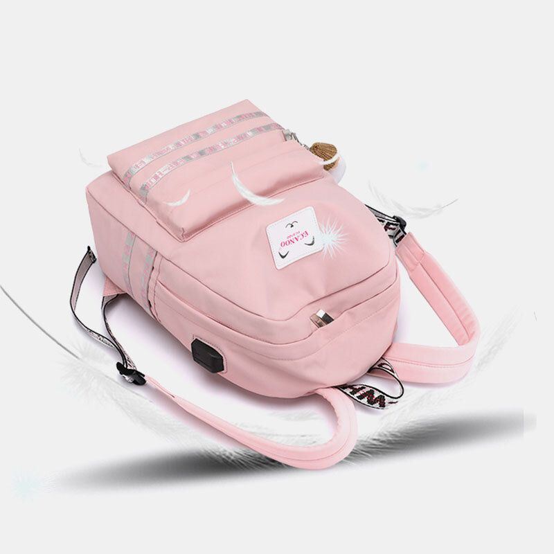 Naisten Suuri Kapasiteetti Rento Matka-opiskelijoiden Koululaukku Usb-latauksella Kulutusta Kestävä Reppu
