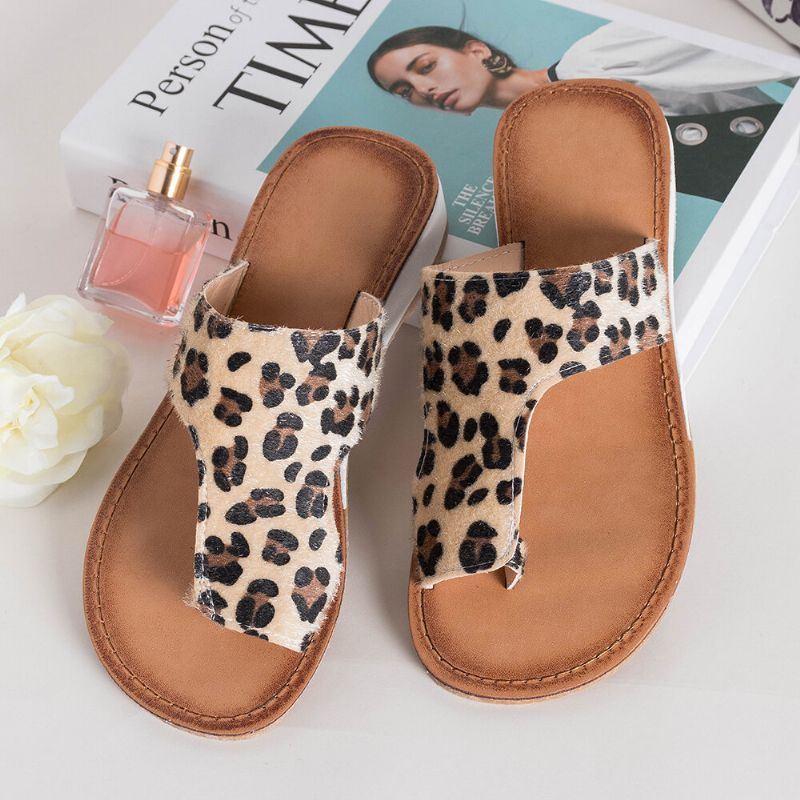 Naisten Suurikokoiset Mukavat Pehmeät Leopardiklipsiklipsiset Litteät Sandaalit