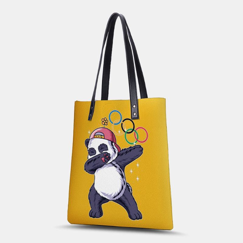 Naisten Talvi 2022 Söpö Pandapainatuskäsilaukku Tekonahkainen Suuri Tilavuus Vedenpitävä Olkalaukku Ostoskassi