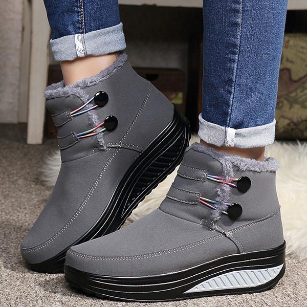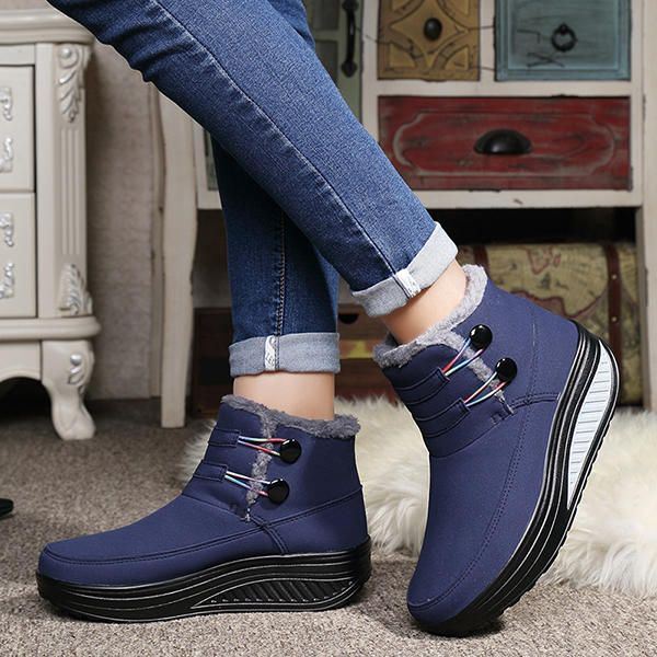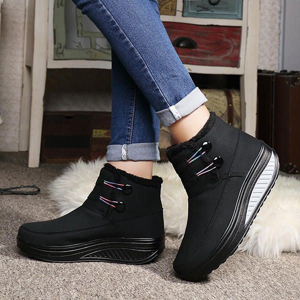 Naisten Talvi Slip On Pidä Lämpimänä Saappaat Tekoturkis Vuori Rocker Sole Kengät Lumisaappaat