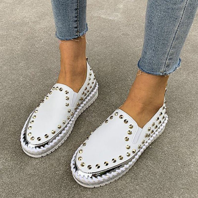 Naisten Tyylikäs Niitti Kiinteä Mukava Vuori Pehmeä Pohja Tasainen Rento Loafers Kengät