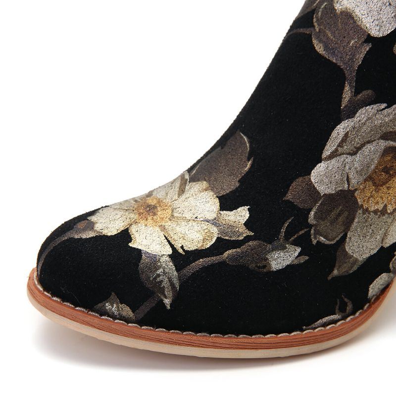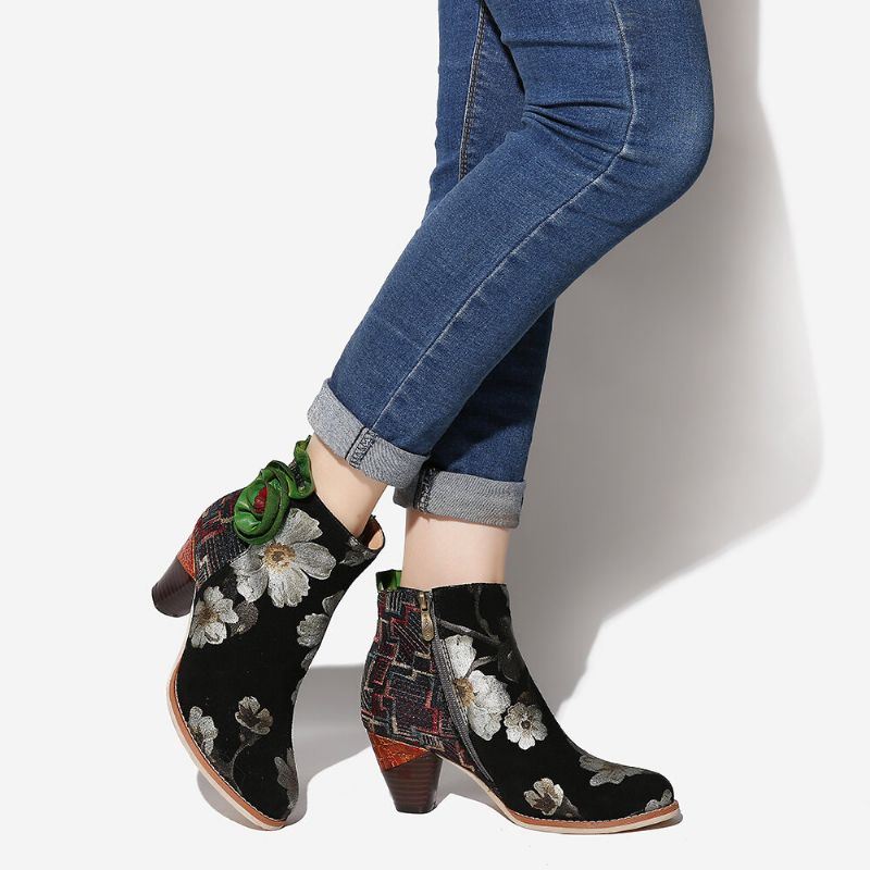 Naisten Vihreä Kukka Aitoa Nahkaa Vetoketjulla Tyylikkäät Korkeakorkoiset Nilkkurit