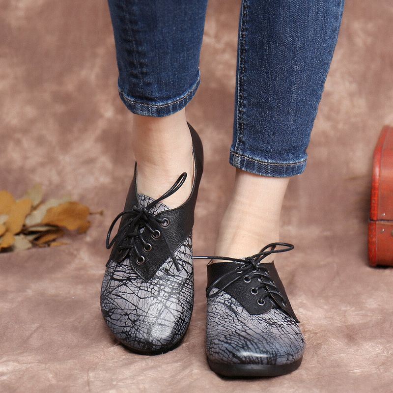 Naisten Vintage-käsintehdyt Nahkaliitokset Mukavat Pehmeäpohjaiset Nauhalliset Tasaiset Kengät