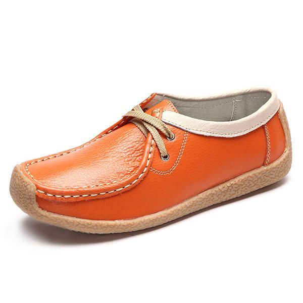 Nauhat Pehmeää Nahkaa Hengittävä Kävelynahkainen Naisten Litteä Kenkä