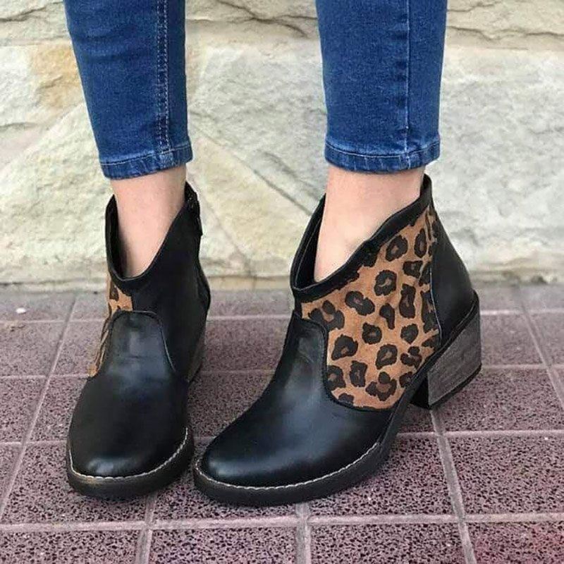 Rento Leopardisivuvetoketju Paksu Kantapää Cowboy-nilkkurit Naisille
