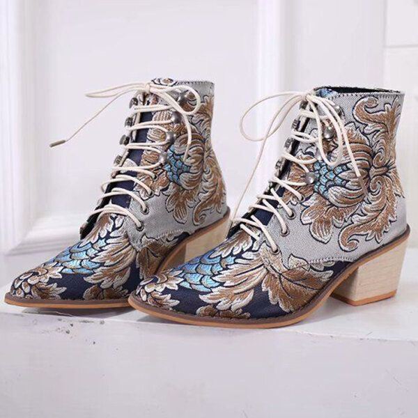Suuret Naisten Teräväkärkiset Brodeeratut Pitsikorkoiset Nilkkurit