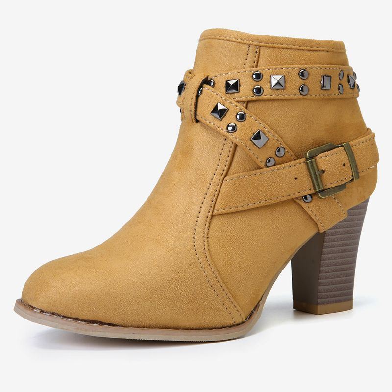 Suurikokoiset Naisten Muoti Mokkanahka Niittivetoketju Korkea Paksu Korko Lyhyet Nilkkurit