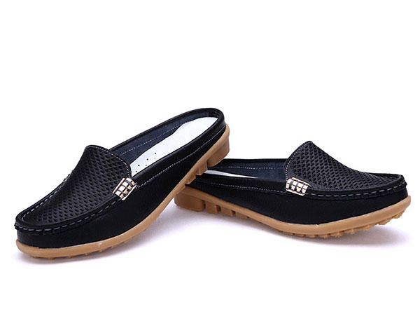 Uudet Naisten Vapaa-ajan Muoti Hengittävät Pyöreät Varvasslip-on Nahkaiset Litteät Sandaalit Kengät