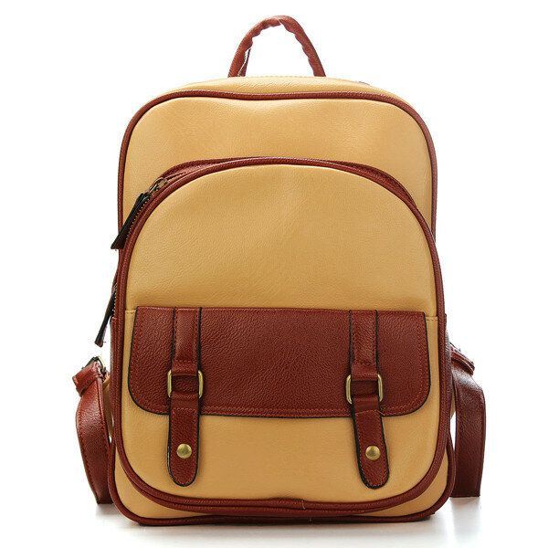 Vintage Naisten Pu-nahkainen Reppu Olkapäällinen Koululaukku